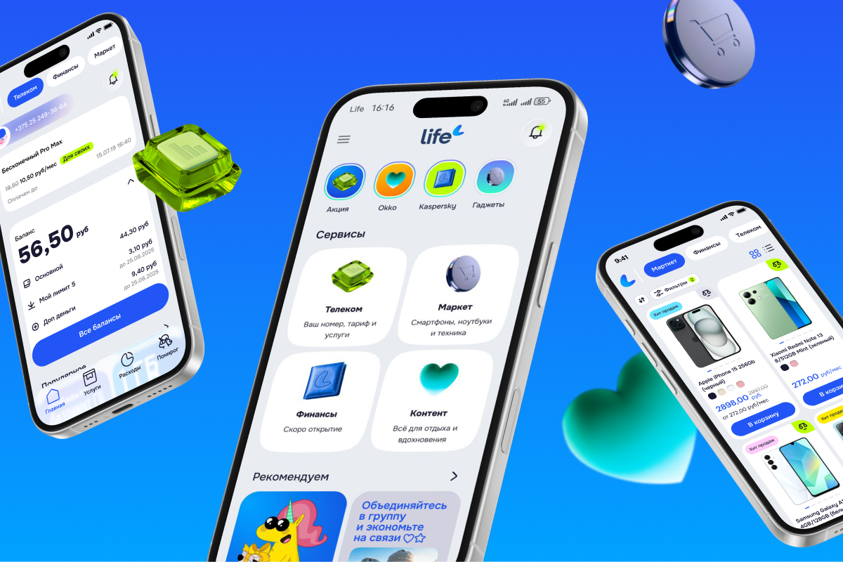 Теперь приложение называется Life. Нейминг подчеркивает переход от сервиса самообслуживания к единому цифровому пространству, в котором объединены связь, финансы, покупки и развлечения в единой экосистеме — без переходов на внешние сервисы.